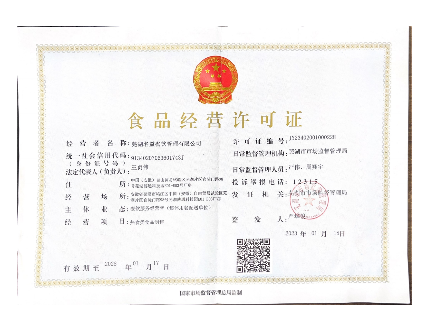 地址:蕪湖市鳩江區(qū)官陡門(mén)路98號(hào)博通科技園名益餐飲管理有限公司